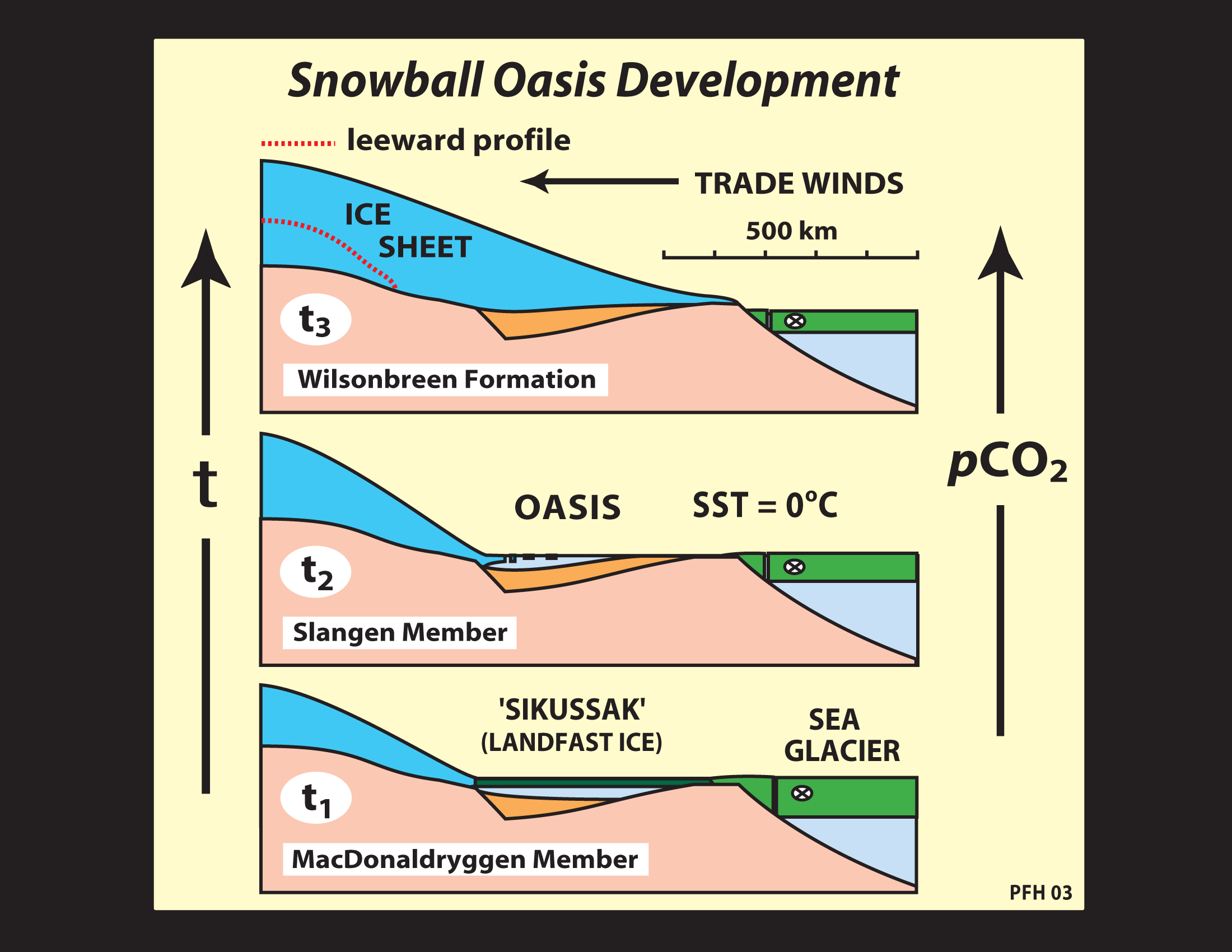 2005). Below: thick tropical sea glacier model ("hard snowball")